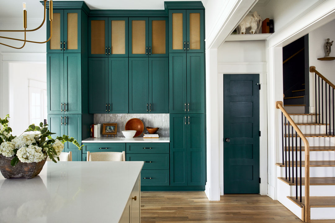 Since the designer was looking for just the right wallpaper, he focused on nature and birds. He also wanted to emphasize the color palette that tolerates the perimeter of the existing cabinet. Although the Cabinet was originally painted green, he described it in a different way, Sherwin Williams’ green, to update the tone and better match the Wallcovel.