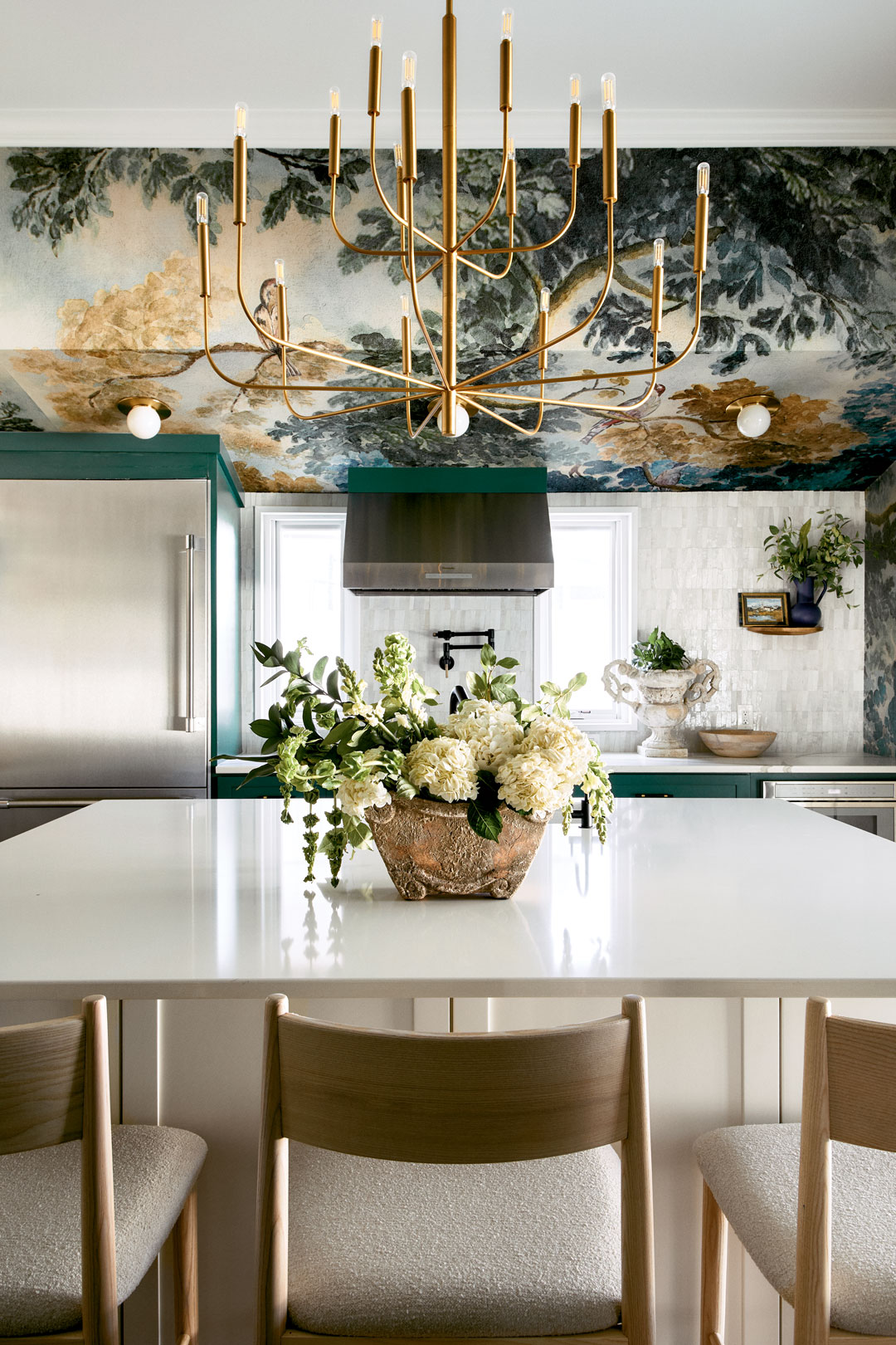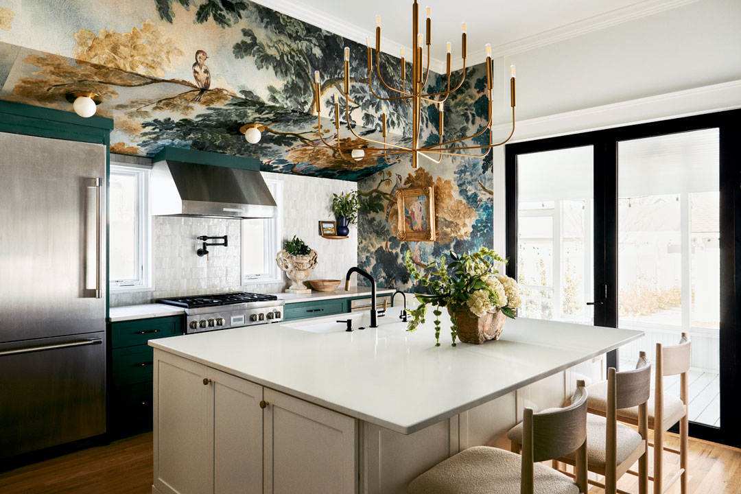 Maros explains: “He loves everything about telling stories. “And we had this very new love in the kitchen when we wanted to emphasize. As we considered the options, we were thinking about tile or wood, but we really like wallpaper, and having some kind of mural in the space was important to him.”
